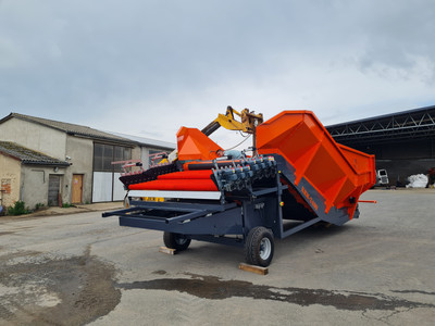 Snadná integrace a ovládání: Příjmové koše Michalak jsou navrženy pro jednoduchou obsluhu a začlenění do technologické linky. Rychlost hlavního pásu lze plynule měnit a přizpůsobit tak navazujícím strojům (např. čističkám, třídičkám, baličkám). Koš KRM 2400 3T je vybaven ovládáním s kabelem o délce 8 m, takže jediný pracovník může pohodlně řídit celý proces z vhodného stanoviště. Samotný stroj je mobilní – díky kolům a odnímatelné oji jej lze v rámci areálu přesouvat traktorem či vysokozdvižným vozíkem a po sezóně případně uskladnit . To vše zjednodušuje logistiku sklizně a snižuje nároky na ruční práci obsluhy.