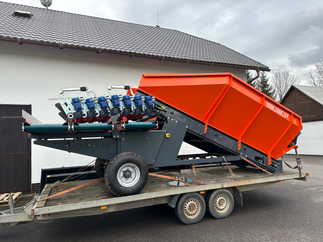 Příjmový koš řady KRM s označením „3T“ disponuje dvěma třídícími sekcemi a třemi paralelními dopravníky, díky nimž dochází k předtrídění brambor, cibule nebo jiné zeleniny již při samotném příjmu. Hlavní pás široký 120 cm je osazen hrabicemi vysokými 16 mm pro spolehlivý transport i větších kusů. Nekonečně variabilní nastavení rychlosti pásu v rozsahu 0,5–4,5 m/min dovoluje přesné sladění výkonu koše s ostatními stroji v posklizňové lince.